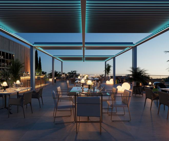 Το Exxen είναι ένα σύστημα βιοκλιματικής πέργκολας αλουμινίου υψηλής ποιότητας ψαλιδιού που εκτελεί την πιο επιθυμητή λειτουργία σε εξωτερικούς χώρους με το πλήρως αναδιπλούμενο χαρακτηριστικό του. Έχει σχεδιαστεί για να βελτιώσει σημαντικά τους εξωτερικούς σας χώρους για να παρέχει απόλυτη προστασία και περισσότερο χρόνο χαλάρωσης για κάθε είδους υπαίθριους χώρους. Το σύστημα είναι μοναδικά ευέλικτο και εύκολα προσαρμόζεται σε διάφορους τύπους μεγάλων χώρων εφαρμογής όπως εστιατόρια, βεράντες, μπαλκόνια είτε ιδιωτικά είτε εμπορικά με τον ξεχωριστό σχεδιασμό του.